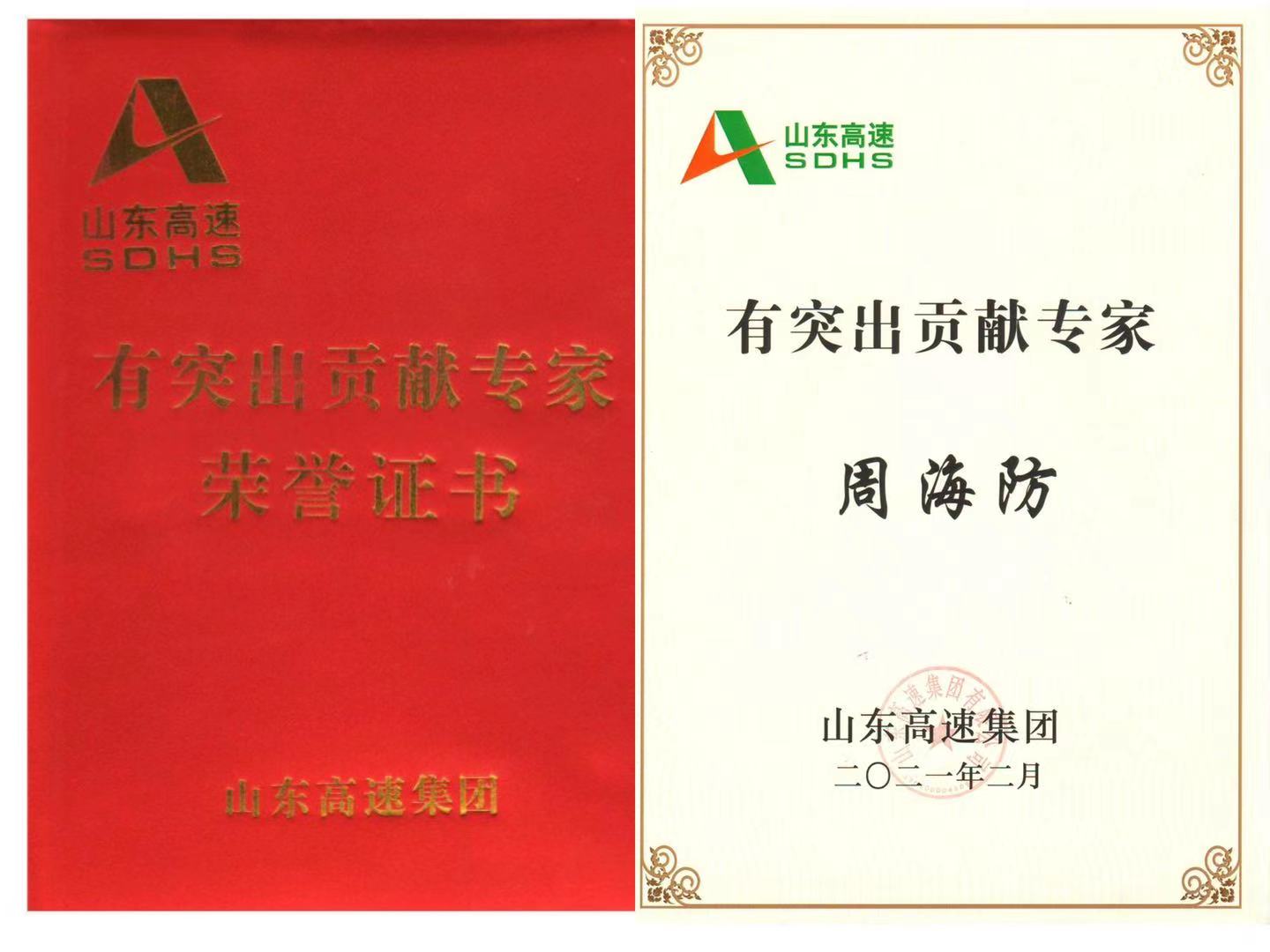 近日,在山東高速集團召開的一屆二次職工(會員)代表大會暨2021年度工作會議上,公司副總經(jīng)理周海防同志被授予2020年度“山東高速有突出貢獻專家”榮譽稱號。山東高速有突出貢獻專家是集團公司設立的專業(yè)技術人才專項榮譽,選拔對象是長期在專業(yè)技術崗位上工作,為集團公司發(fā)展做出突出貢獻的專業(yè)技術人才。